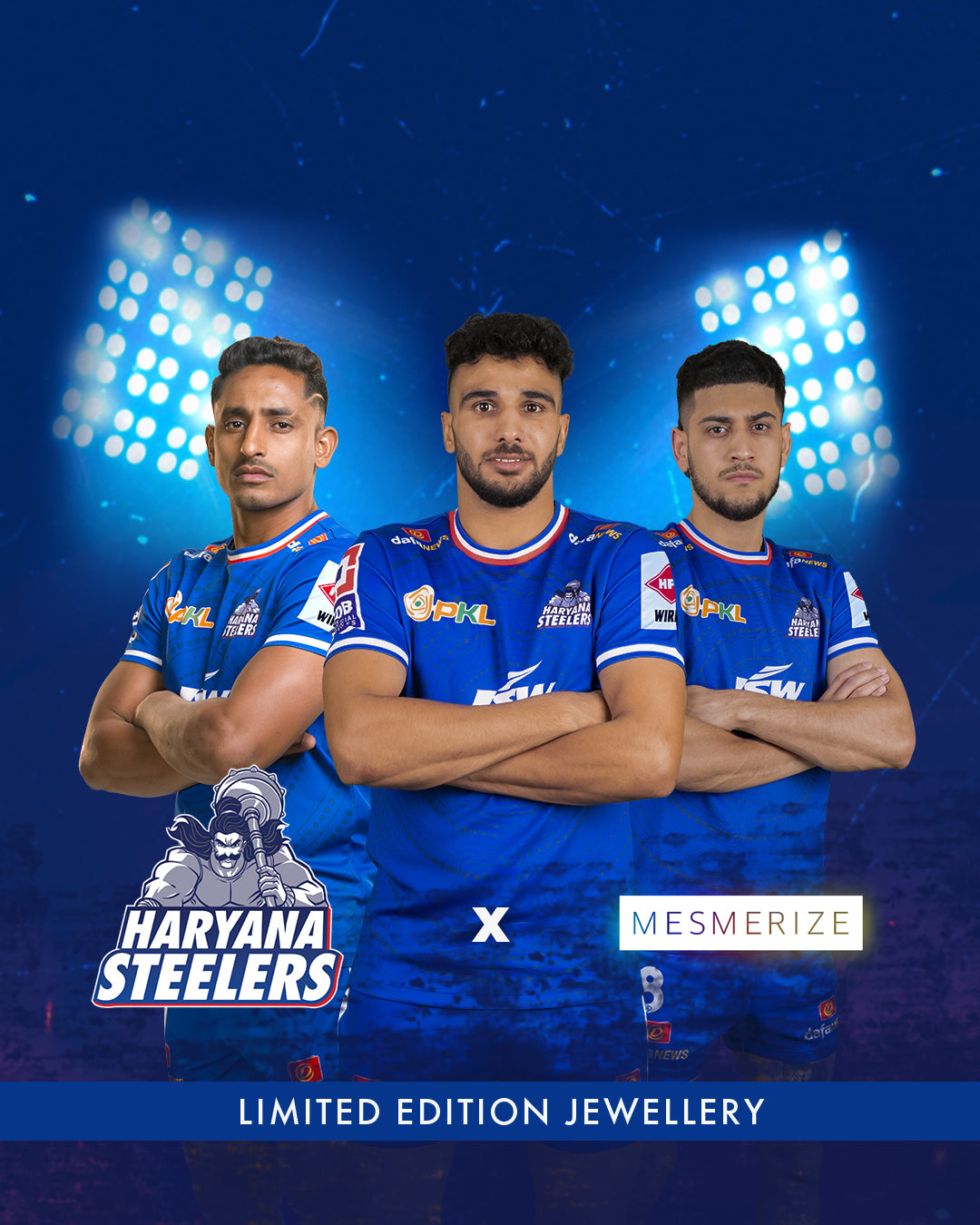 The Haryana Steelers X Mesmerize collection brings you sleek stainless steel necklaces, bracelets, and rings inspired by Kabaddi. Tough, bold designs capture the strength and energy of the Haryana Steelers. Perfect for fans who want to carry a piece of the game with them. Durable, stylish, and ready for action!