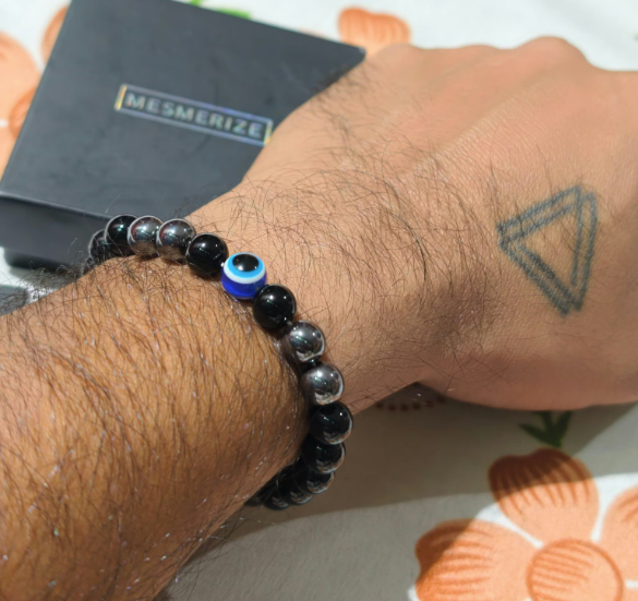 - Made of black gloss onyx, hematite, and evil eye beads, this bracelet offers various healing properties such as providing strength, promoting focus and self-confidence, and protecting against negative energies, while also providing grounding energy and warding off evil spirits or misfortune.