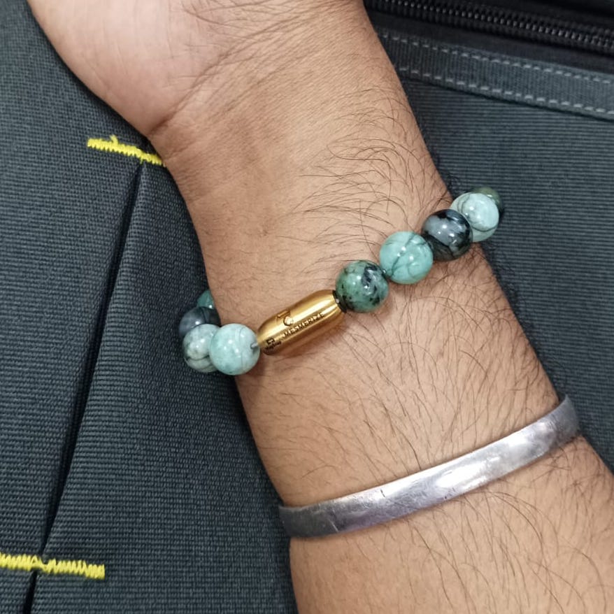 Discover the refined charm of the Green Radiance Emerald(Panna) Natural Stone Bracelet, crafted with precision and powered by the secure MagSnap3 closure. Featuring vibrant green emerald natural stones, this bracelet channels clarity, renewal, and confidence in every wear—making it the ideal blend of luxury and intention.