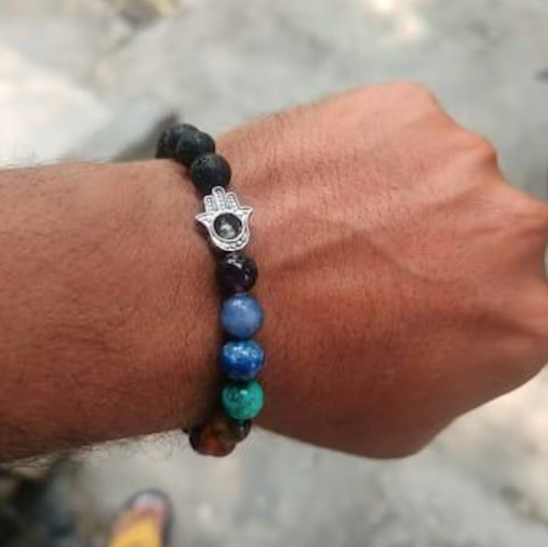 About Lava 7 Chakra Natural Stone Hamsa Bracelet
