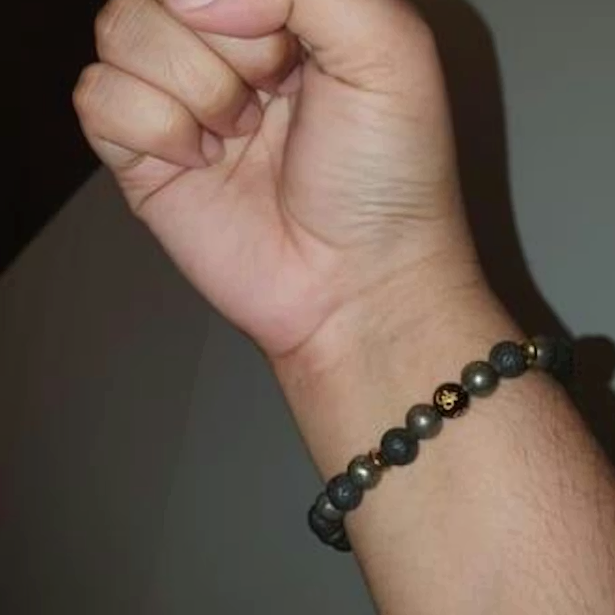 About Spiritual Pyrite Natural Stone OM Bracelet
