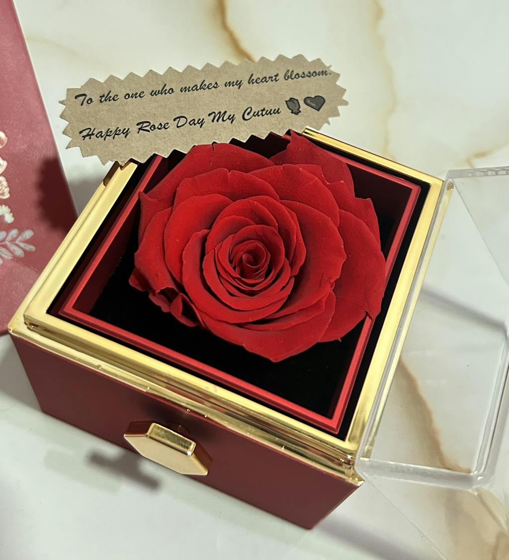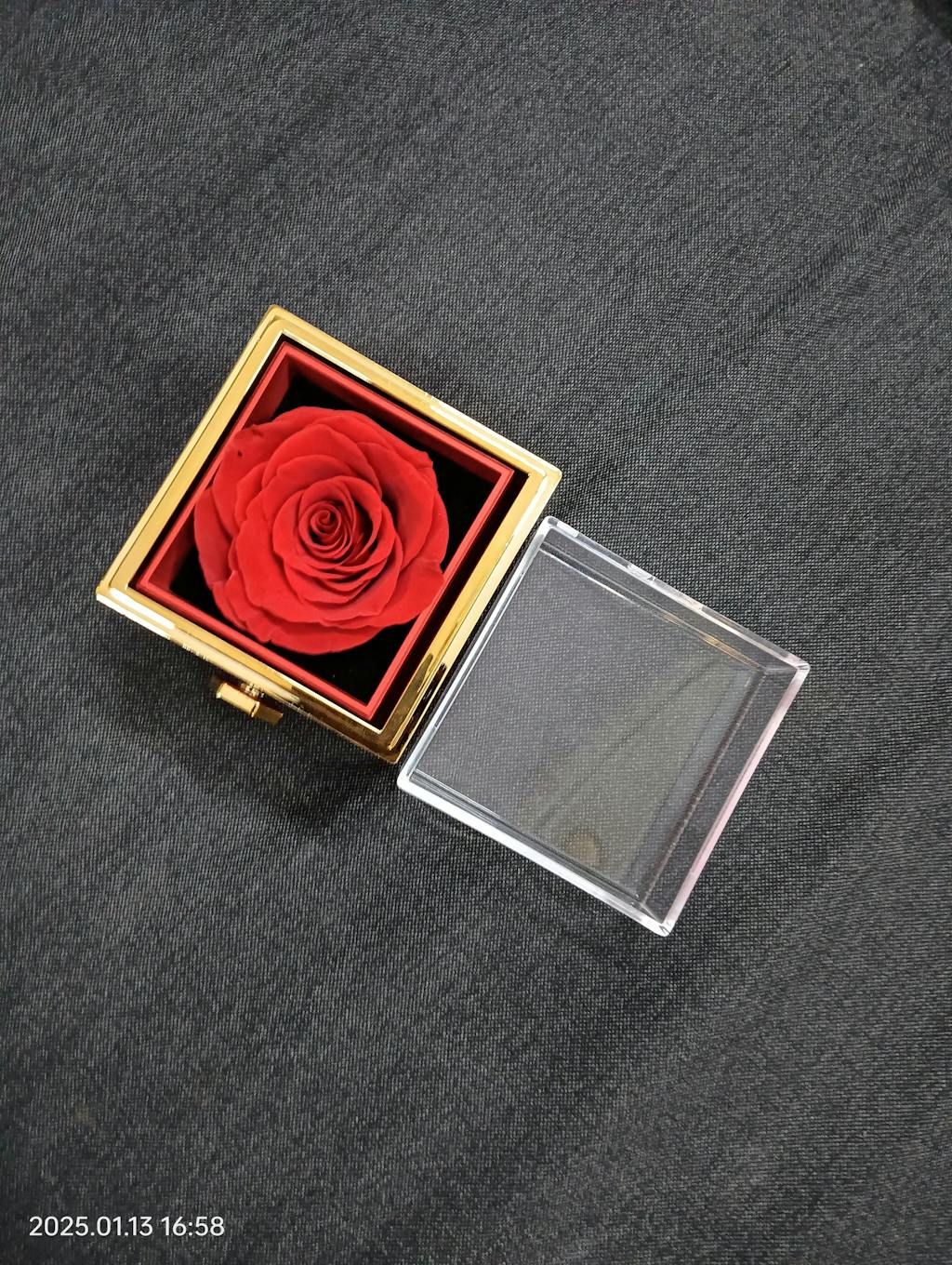 • Rotating Mechanism: The box features a rotating design, allowing the rose to be elegantly displayed and easily accessible.
