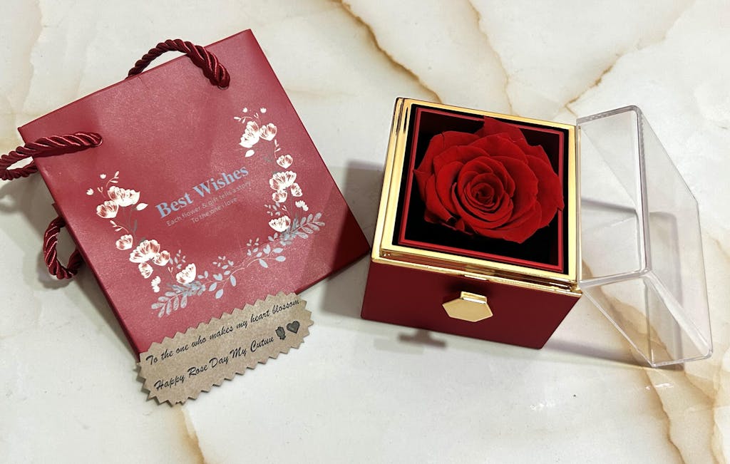 • Preserved Rose: Each box contains a real rose that has been carefully preserved to maintain its natural beauty and longevity.