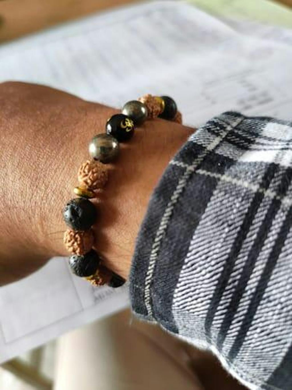 About Spiritual Rudraksh Natural Stone Pyrite Om Bracelet