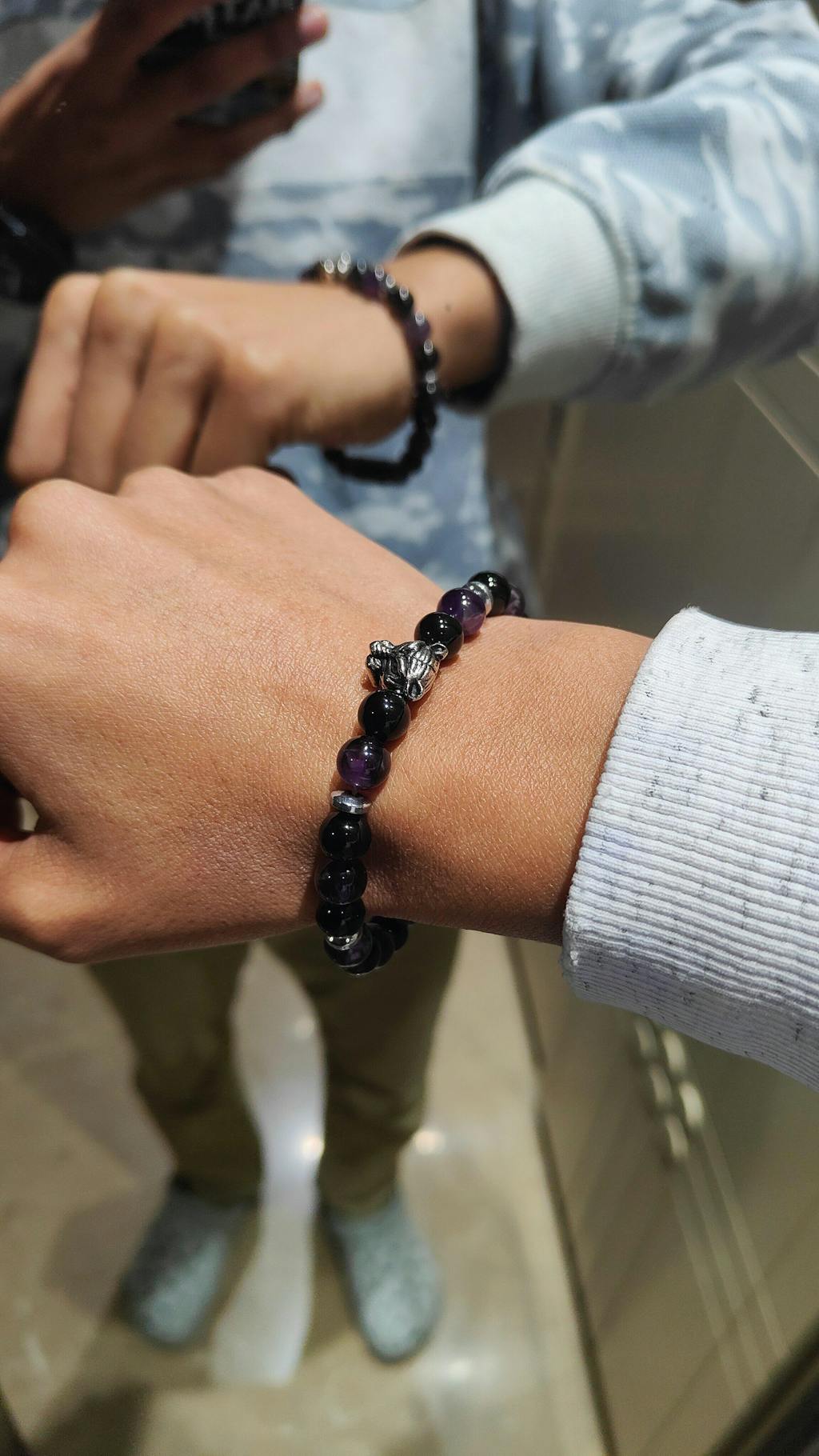 Enhance Your Wellness Journey: Onyx and Amethyst Natural Stone Bracelet with Magsnap 2